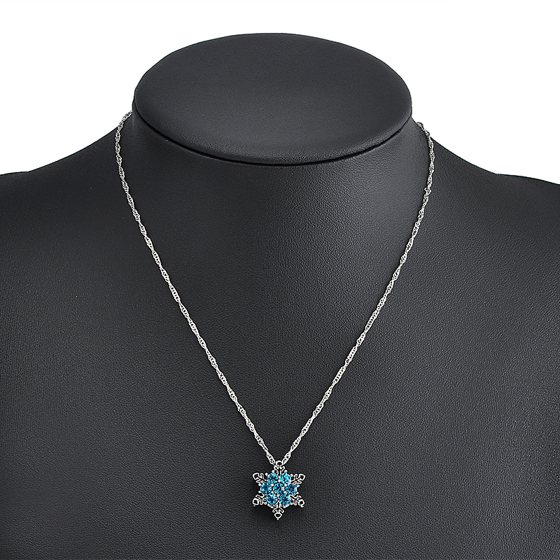Charm Vintage lady Blue Crystal Snowflake Zircon Flower Silver Necklaces & Pendants Jewelry for Women Free Shipping