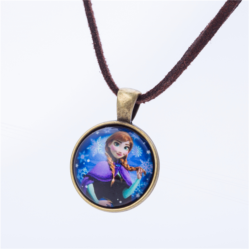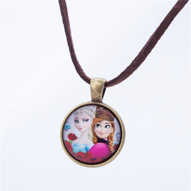 Cute Cartoon character Jewelry Glass Cabochon Brown Leather Chain Necklace Pendants Fashion Collares Women Girl Children Gift