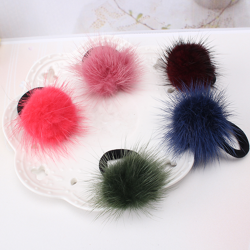 Korean Artificial marten hair Ball Elastic Hair Band Ponytail Holder Girl Hair Clip Headband Hair Accessories Gift Free shipping