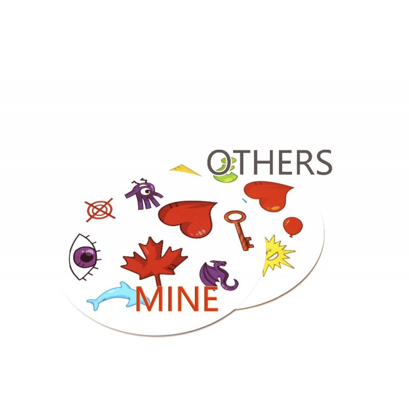 1. there is 55 cards in the box, every card have 8 signs, total are 50 kinds of sgins. there is only one signs are the same in each two cards