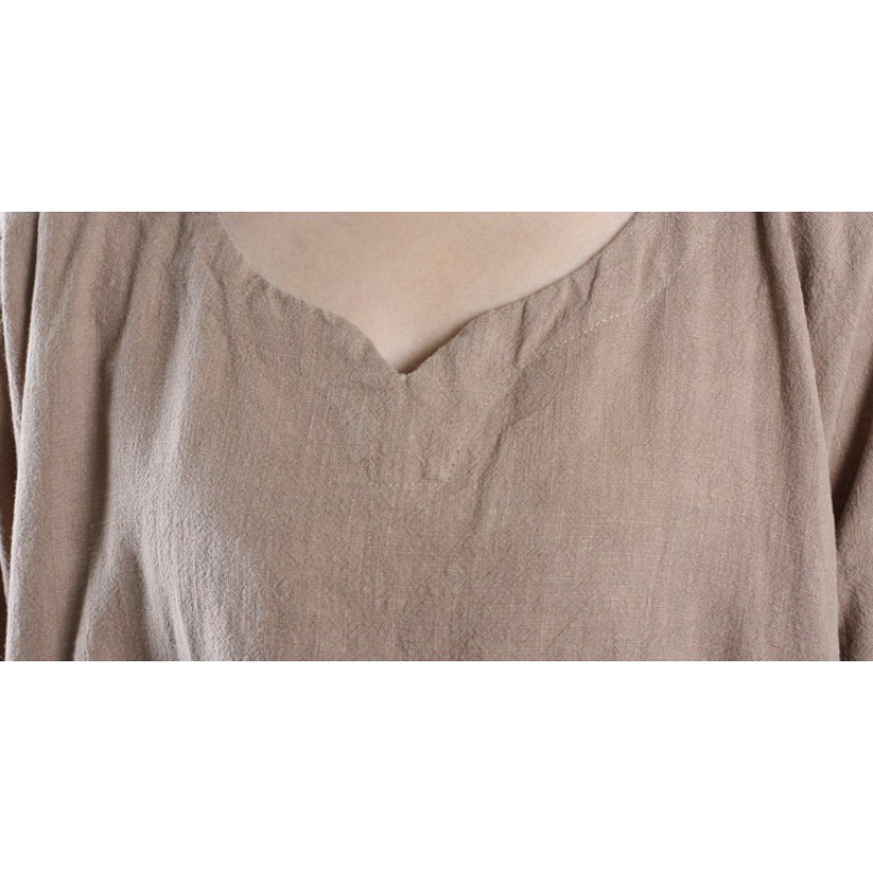 SCUWLINEN Vestido Linen Maxi Casual Dress 2017 Spring Pullover Long-sleeve Loose Plus Size Women Dress V-Neck Vintage Dress