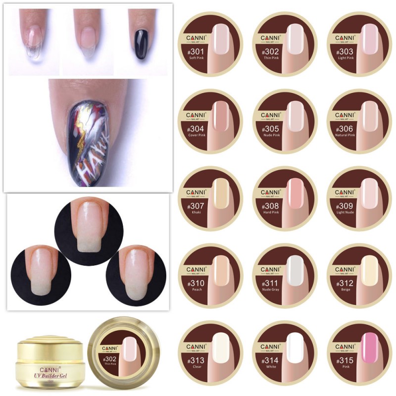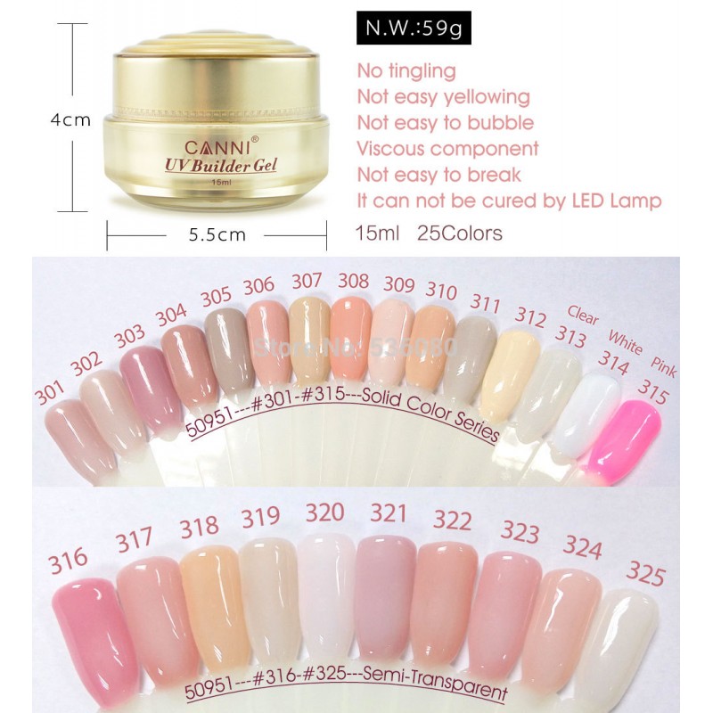 #50951 2017 newest CANNI 15ml 25 colors semi color solid stransparent color extend uv camouflage hard jelly builder stand gels