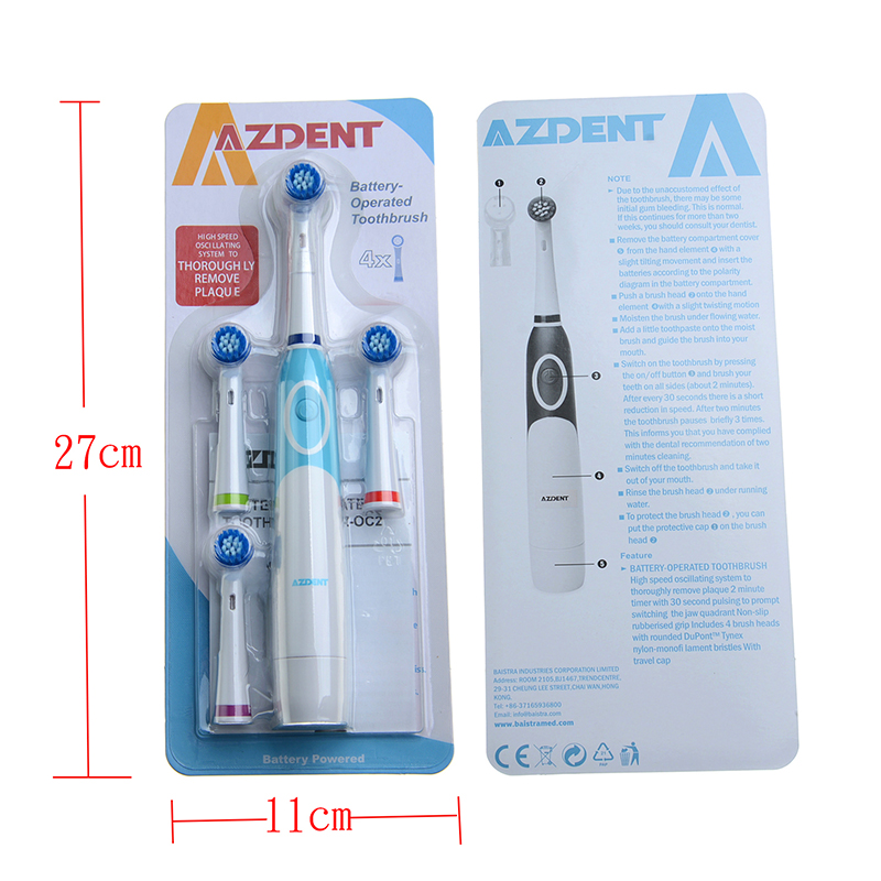 AZdent Hot Sell Battery Operated Electric Toothbrush with 4 Brush Heads and 4 another brushes head Oral Hygiene Health Products