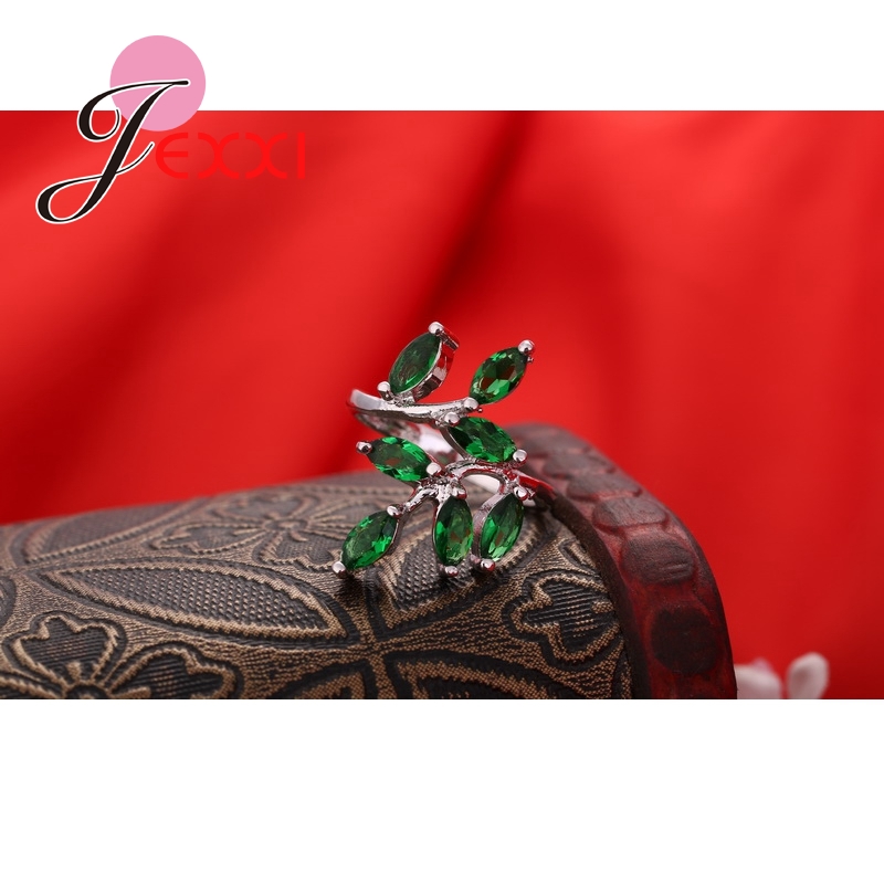 Beautifull-Green-Leavies-With-AAA-Austrain-Rhinestone-WomenGirls-925-Sterling-Silver-Rings-For-Weddi-32687578343