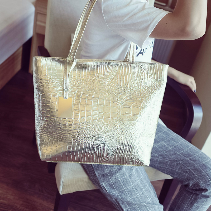 Brand Fashion Casual Women Shoulder Bags Silver Gold Black Crocodile Handbag PU Leather Female Big Tote Bag Ladies Hand Bags Sac