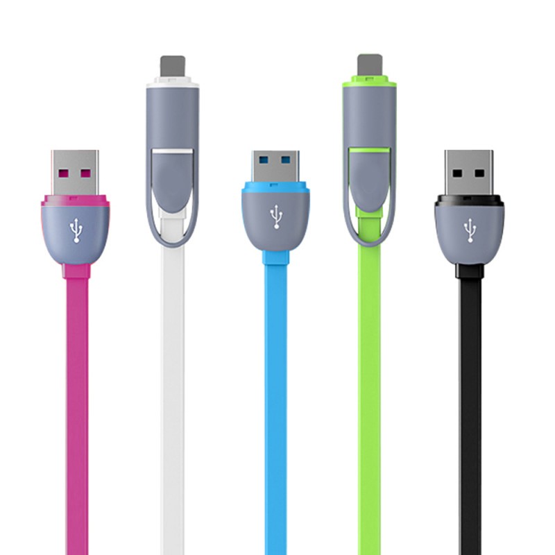 Colorful Micro USB Cable 8Pin 2 in 1 Sync Data Charging USB Cable for iPhone 5 6 6s plus Fast Charger Cable For Samsung S4 S5 S6