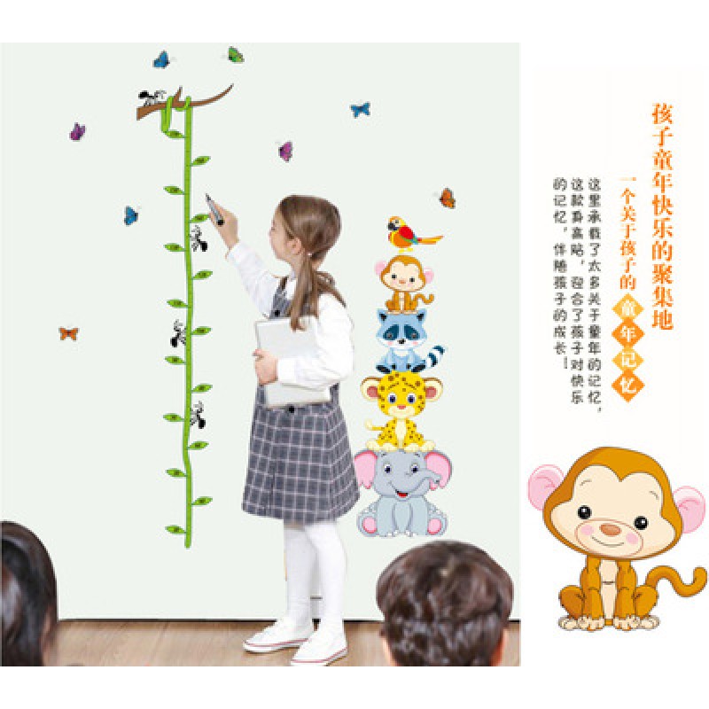 Cute tiger animals stack height measure wall stickers decal kids adhesive vinyl wallpaper mural baby girl boy room nursery decor