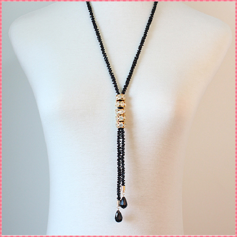 Exaggerate long pendant necklaces for women elegant black gold vintage necklace tassel waterdrop design necklaces gift #NL068