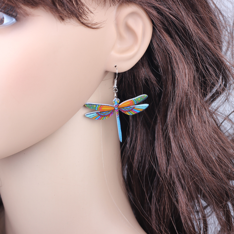Fashion Dangle Dragonfly Earrings Acrylic Long Drop Earring New Arrival 2015 Spring Summer Style For Girls Women Jewelry