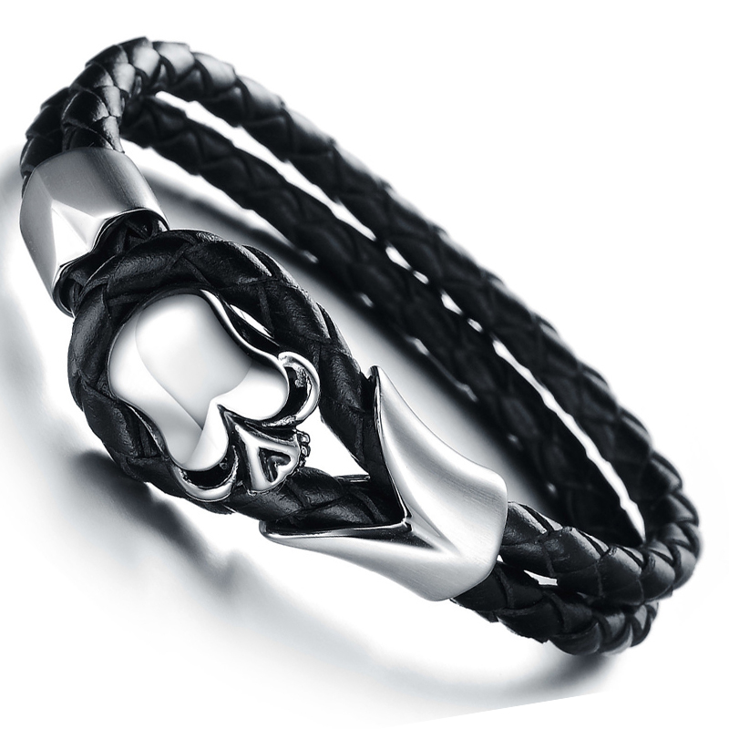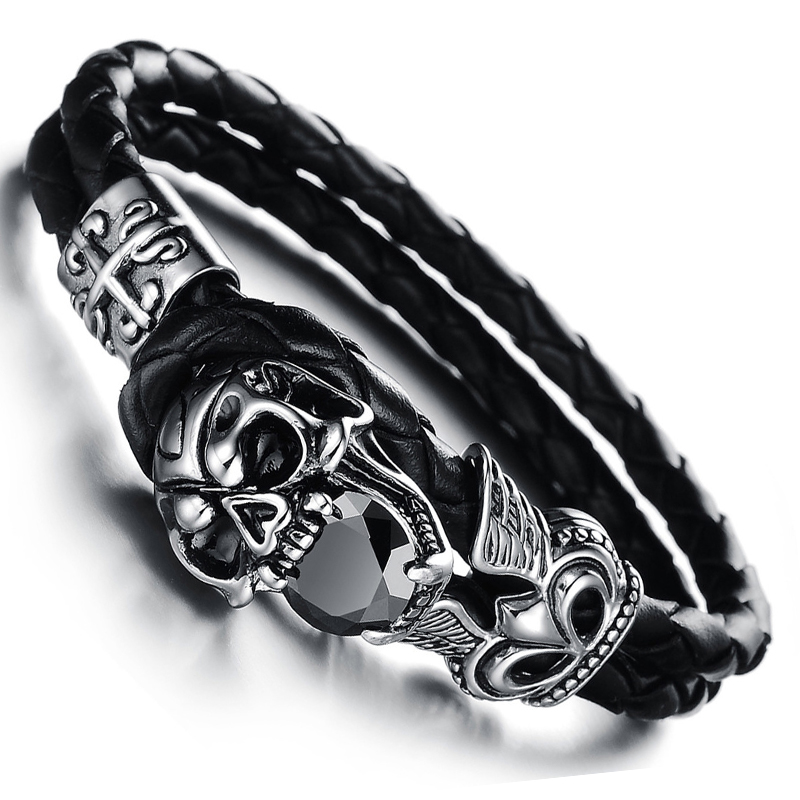 MOZO-FASHION-Men-Bracelet-Stainless-Steel-Skull-Bracelets-Black-Synthetic-Leather-Rope-Hand-Bracelet-1929632493