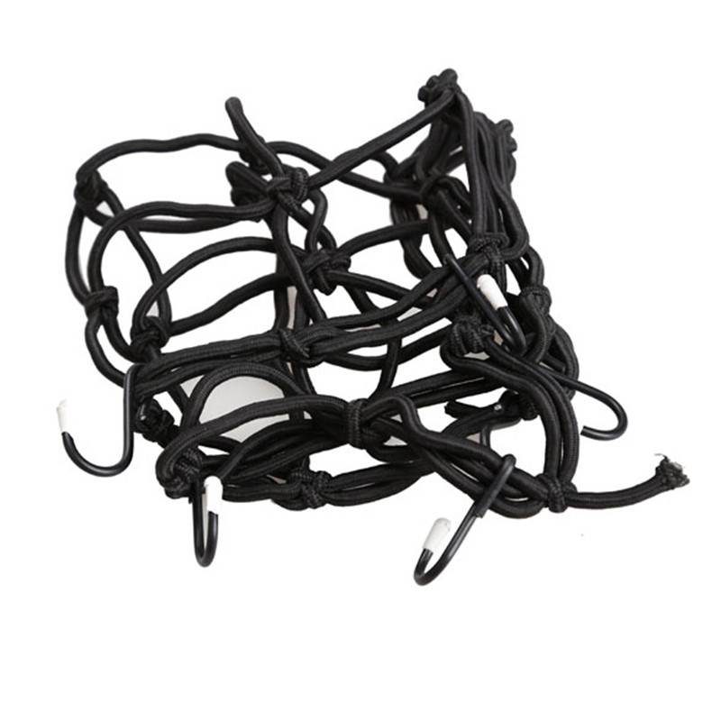 Essential for storing spare helmets and jackets or equipment and luggage while you\'re on the road, the net is made from bungee cord, has 6 hooks to hold down luggage and other things.