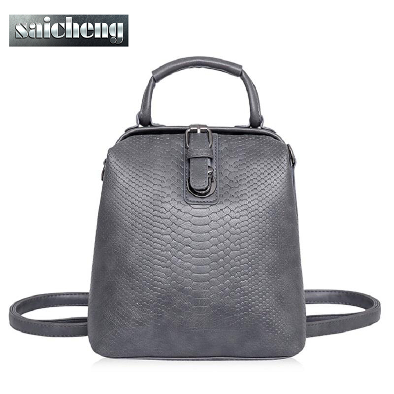 New Hot European style Women Crocodile Pattern Doctor Women Backpack 2016 Famous HASP Belt Bags Women's PU Leather Rucksack Bag