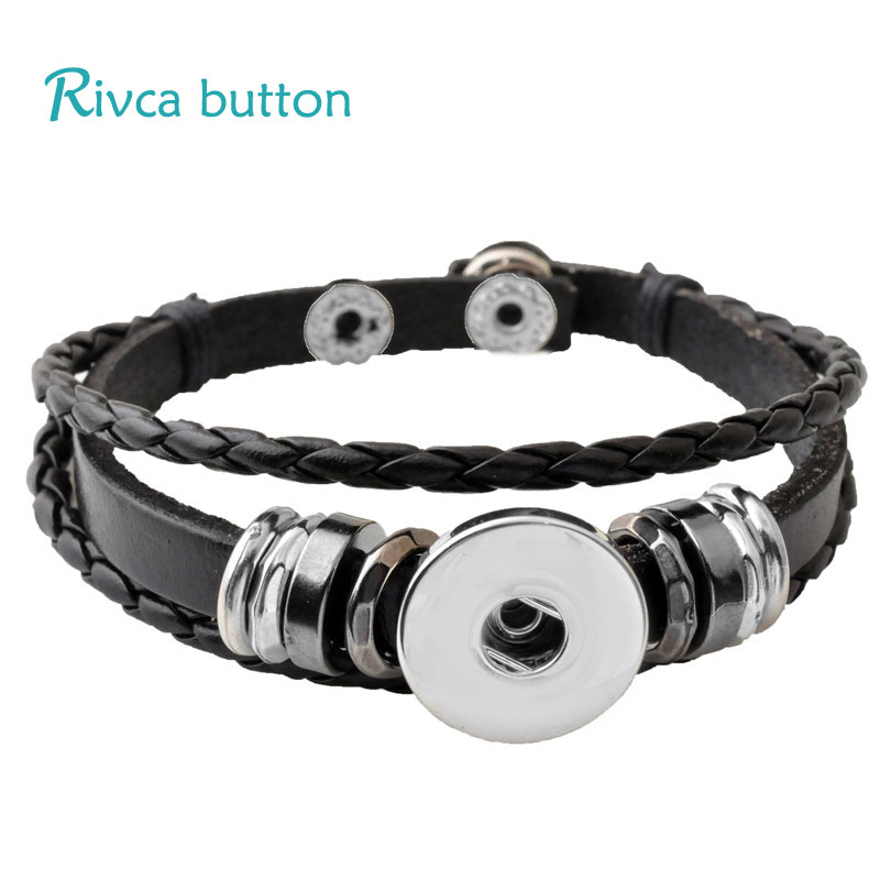 P00646 Wholesale Snap Button Bracelet&Bangles 10 color High quality leather Bracelets For Women 18mm Rivca Snap Button Jewelry