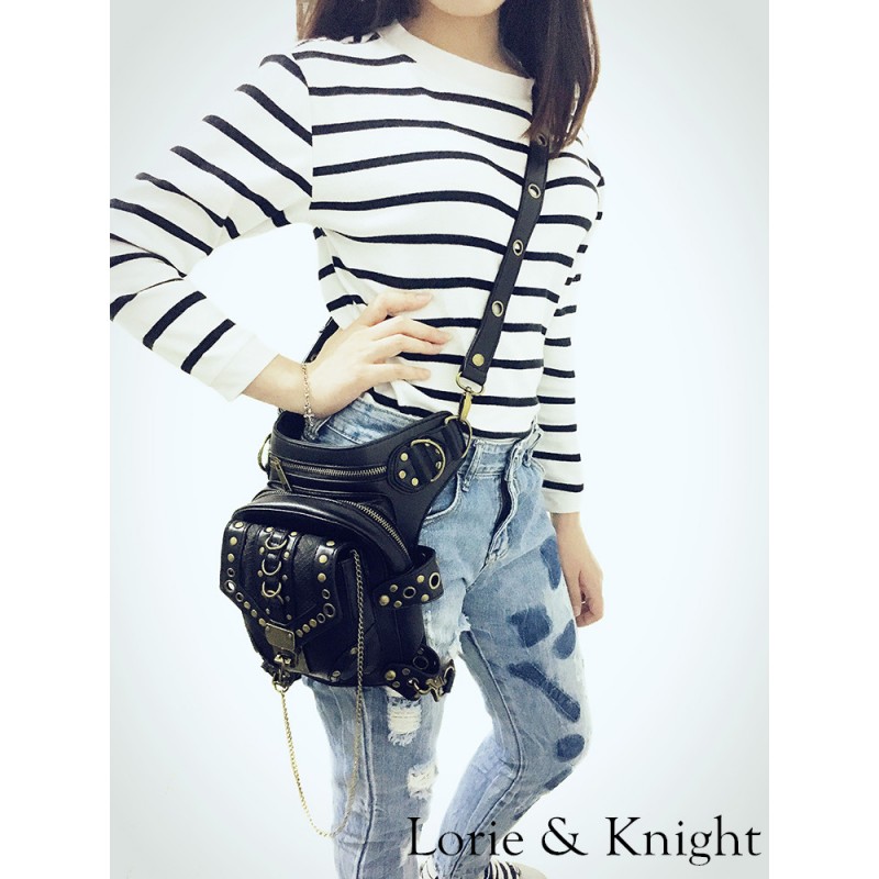 Personality Women/Men Black Leather Steampunk Mini Waistbag Motorcycle Leg Thigh Holster Bag Crossbody Bag