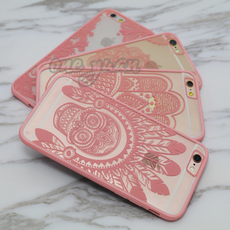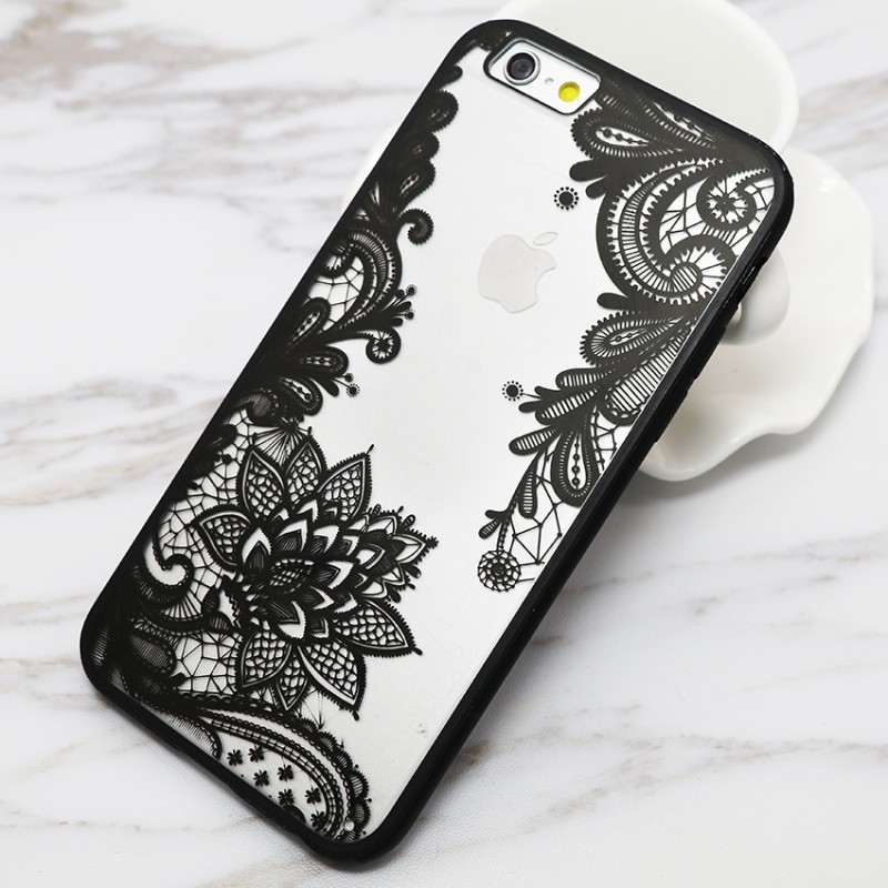 Sexy Lace Floral Paisley Flower Mandala Henna Clear Case For iphone 6 6S Plus 6Plus Phone Cases Fashion Cartoon Capa Back Cover