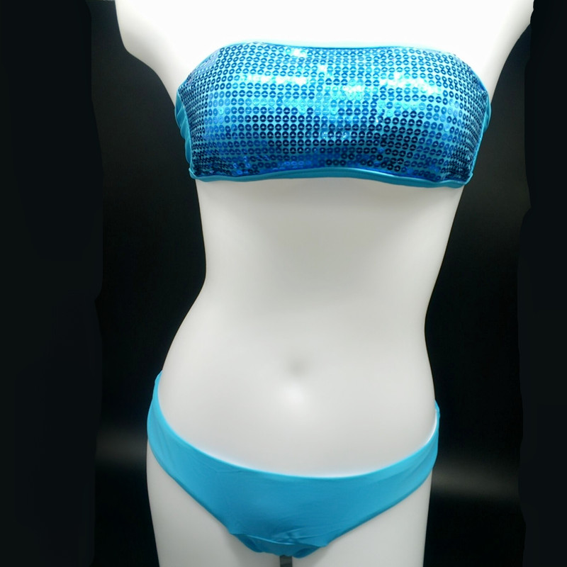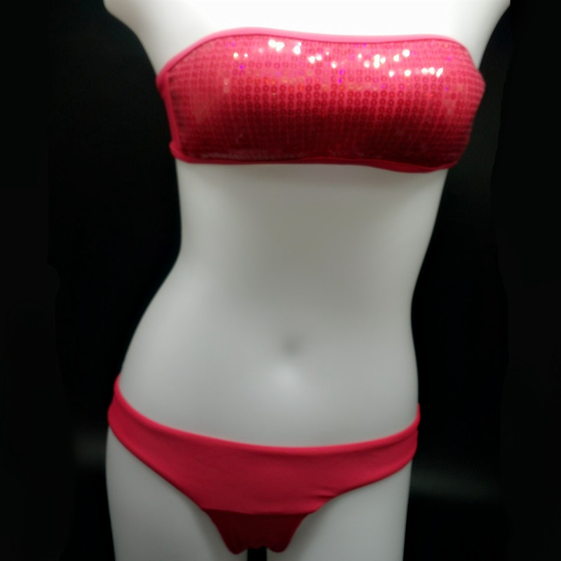 Sexy bandeau swimwear bikini set top & bottom 2017 beach swim push up vintage sequined bathing suit women maillot de bain femme