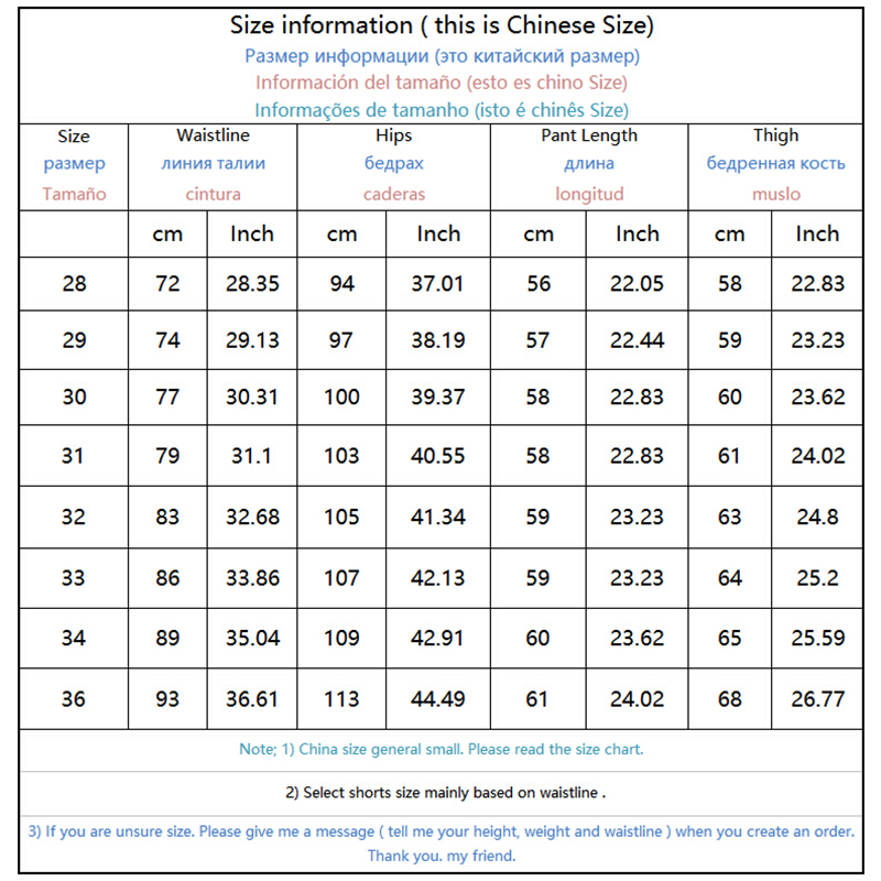 If you are unsure size. Please give me a message ( tell me your height, weight and waistline ) when you create an order.