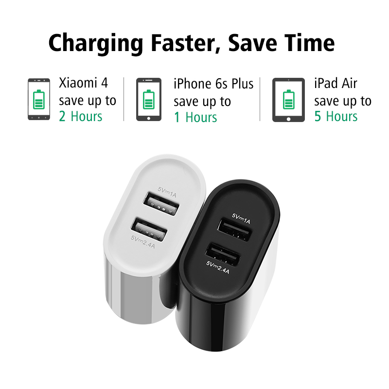 • Output: total 5V3.4A, one is 2.4A, the other is 1A