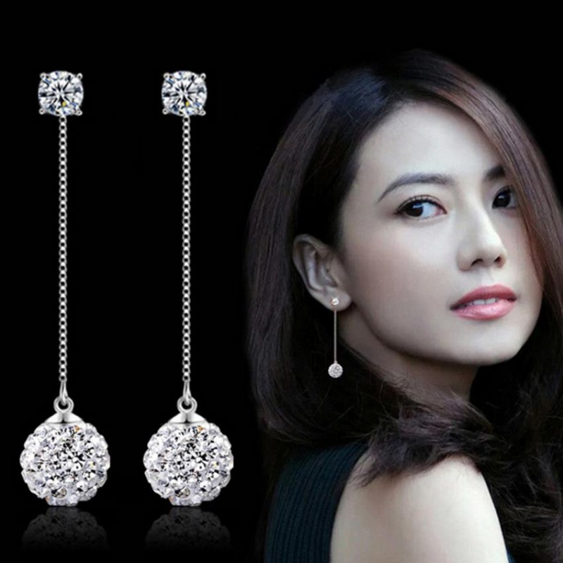silver plated Super flash Shambhala Rhinestone tassel earrings long section of female fashion jewelry simple eardrop 65MM