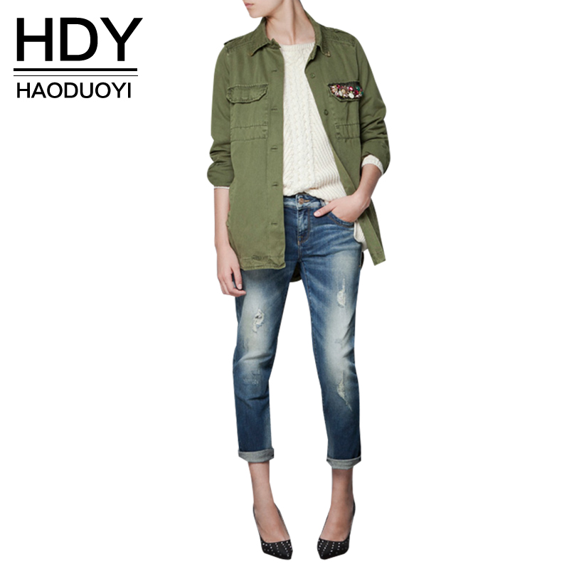 HDY Haoduoyi navy green short trench turn-down collar Outwears diamond women Coats for wholesale