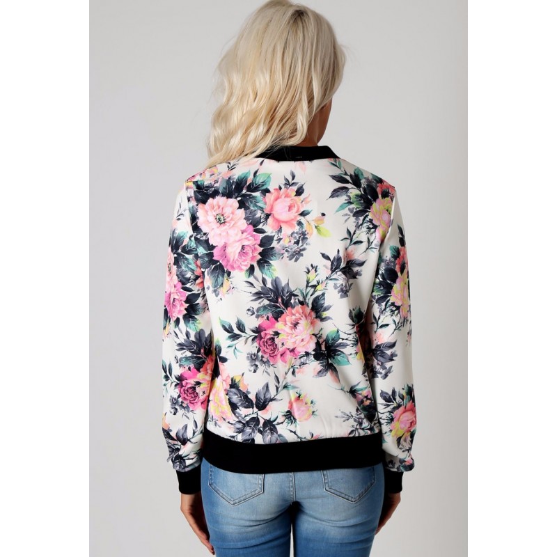 Flower Print Women Basic Coats Long Sleeve Zipper Bomber Jacket Casual Jacket Coat Autumn Winter Streetwear sukajan