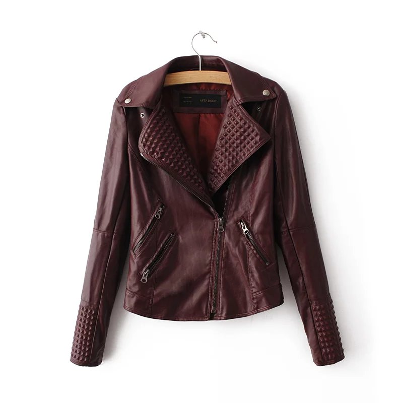 Free shipping casual women short paragraph wild stitching high waist lapel zipper pocket solid color leather jacket coat